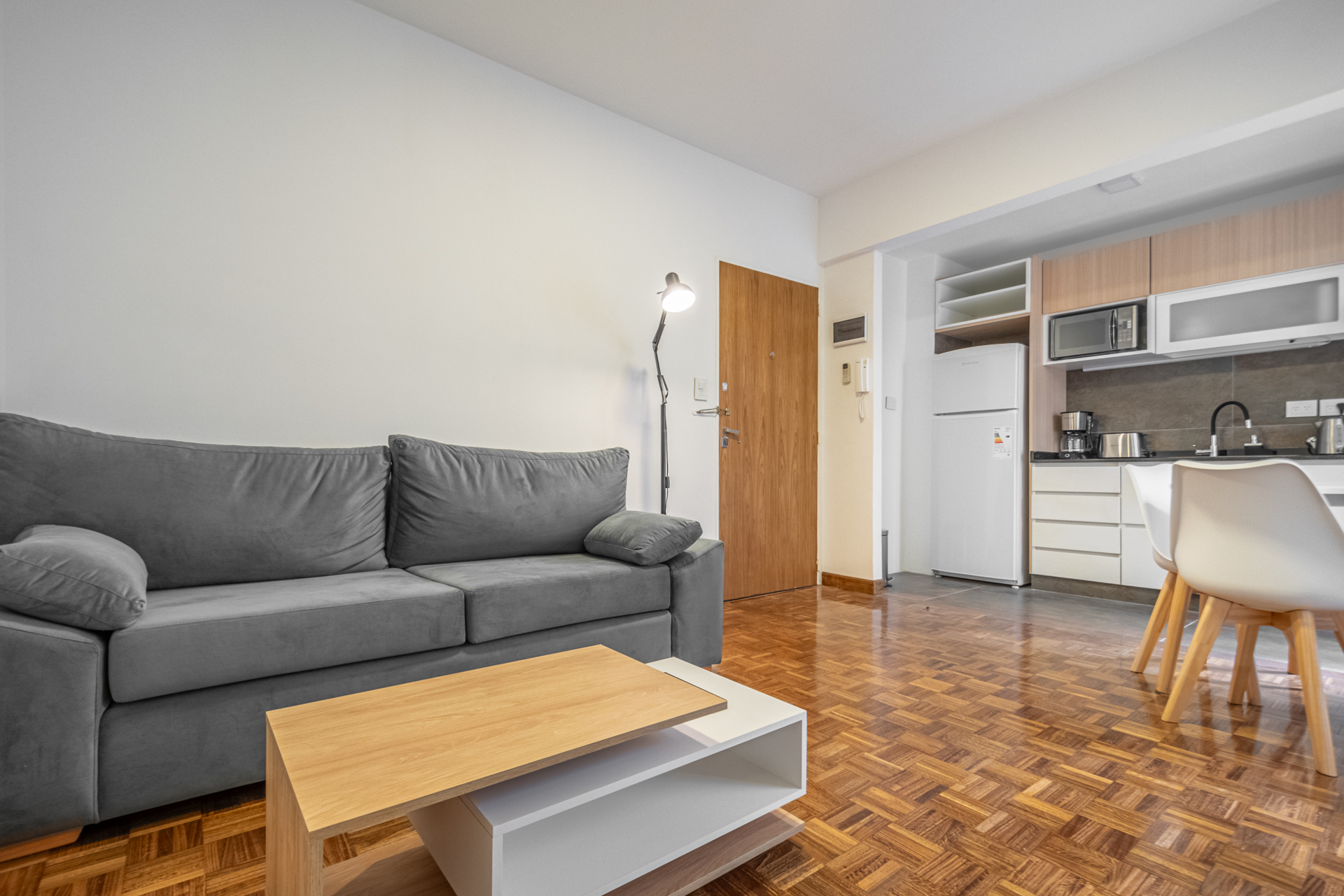 Departamento en Alquiler de dos ambientes en John F. Kennedy 2800, Palermo, CABA. Amoblado y equipado, en piso alto, entre Av. Cerviño y Demaría, frente a la plaza Martín de Álzaga, en el barrio de Palermo, en la mejor zona de la ciudad de Buenos Aires. Reciclado, totalmente a nuevo, en perfecto estado. Living comedor con sillón de dos cuerpos, mesa ratona, velador de pié y TV, con salida al balcón. Cocina integrada equipada, con bajomesada y alacena, artefacto de cocina a gas, extractor, heladera con freezer, microondas, pava eléctrica, cafetera, tostadora, vajilla. Escritorio lindero al ventanal, con cortina roller Sunscreen. Hall distribuidor. Espejo rectangular. Dormitorio cuenta con sommier de dos plazas, mesas de luz y veladores, placard con interiores. Baño completo con ducha, mampara, vanitory y extractor. Split frío / calor en ambos ambientes. Pisos de parquet. Balcón a pulmón de edificio, con lavarropas. Luminoso. Edificio con seguridad 24 hs. Disponible a partir del 1 de julio- Contrato: uno o dos años. Garantía: seguro de caución Finaer o Garantía Ya solamente. Edificio ubicado en una zona rodeado de espacios verdes. "La propiedad cuenta con accesibilidad para personas con movilidad reducida" (Ley 5115). "Para los casos de alquiler de vivienda, el monto máximo de comisión que se le puede requerir a los propietarios será el equivalente al cuatro con quince centésimos por ciento (4,15%) del valor total del respectivo contrato. Se encuentra prohibido cobrar a los inquilinos que sean personas físicas comisiones inmobiliarias y gastos de gestoría de informes". Comercializa Christian Jakubowicz Bienes Raíces mat. CUCICBA CPI 8412 - CMCPLM 1047.